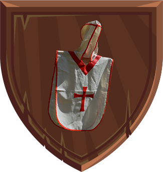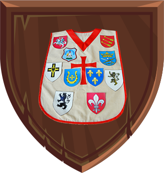 Koszulka rycerska wykonana z naturalnej tkaniny nakładana przez głowę, w komplecie z bawełnianym paskiem służącym do zawiązania w pasie.